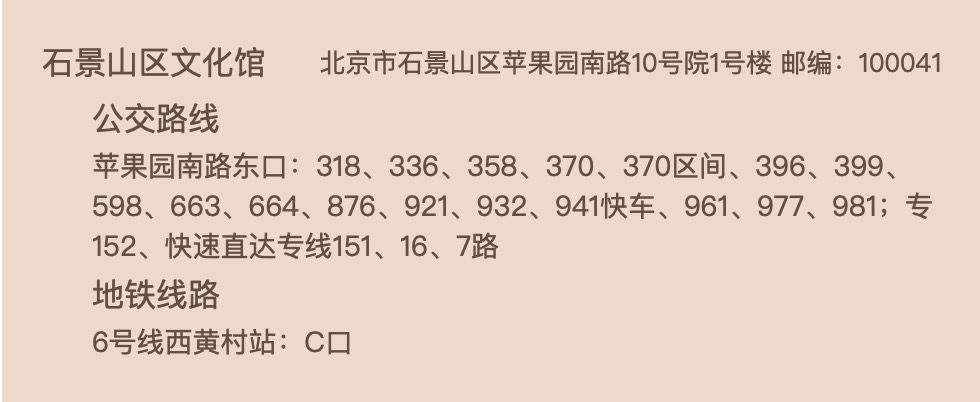 展览地点:北京市石景山区文化馆8楼美术馆(有地下停车场)